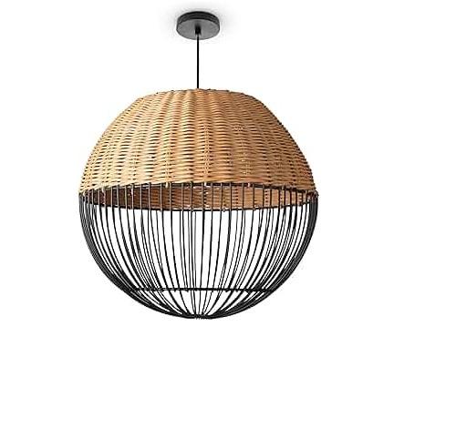 Lámpara colgante con forma de flor marrón de ratán grande Royal Look para cocina, sala de estar, sala de estar, decoración de luz central