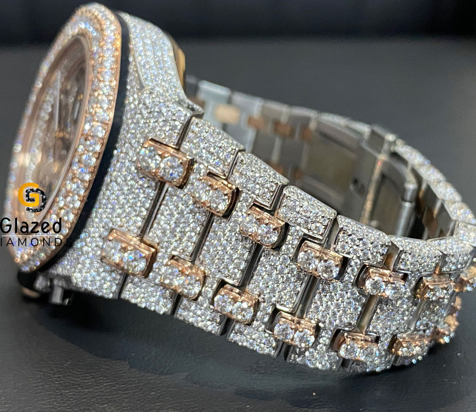 Reloj Royal Moissanite Totalmente helado con diamantes redondos de corte brillante en acero inoxidable Mejora de la claridad VVS