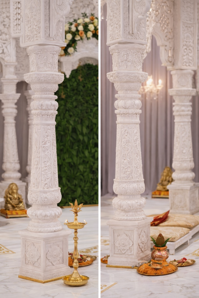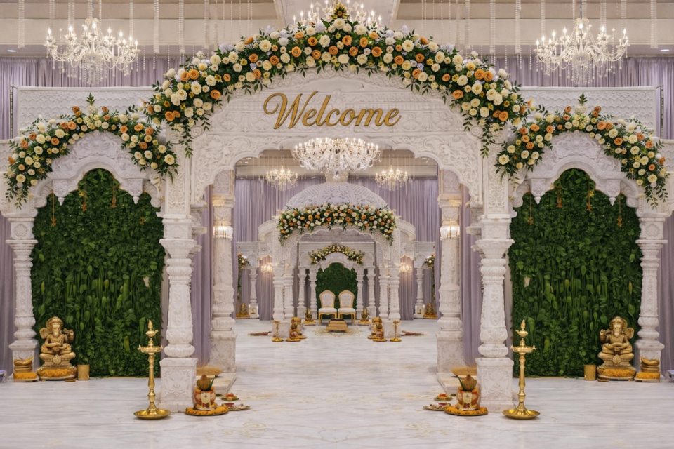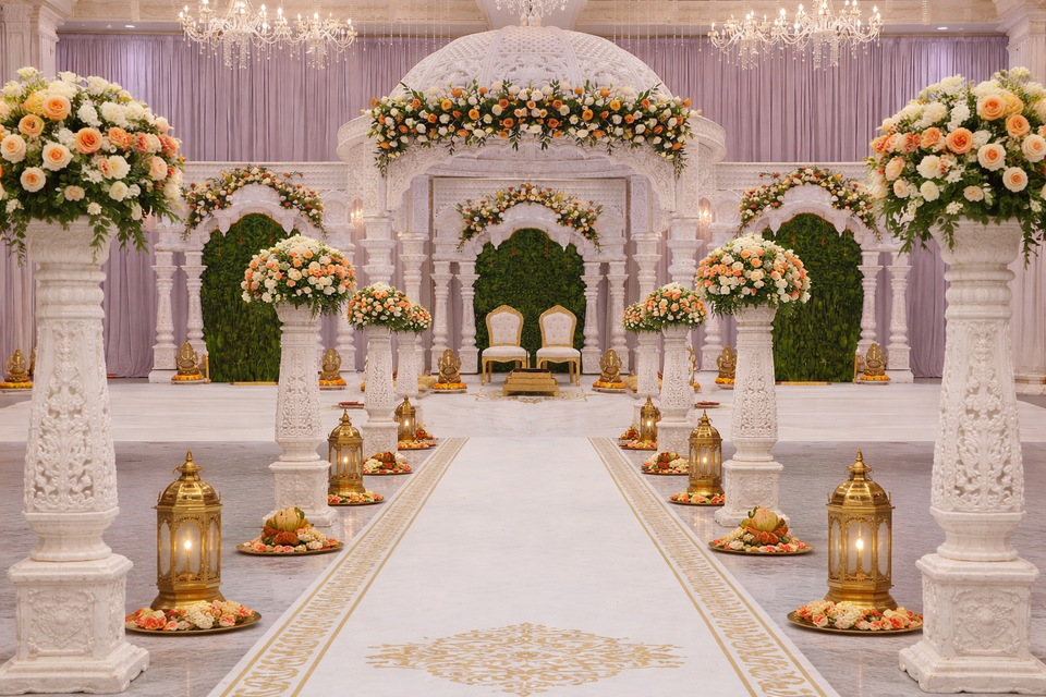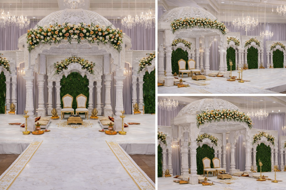 Mandap de Boda Estilo Raj Mahal Real con Cúpula, Mandap Indio Convencional para Salones de Boda, Impresionante Mandap Blanco para Bodas
