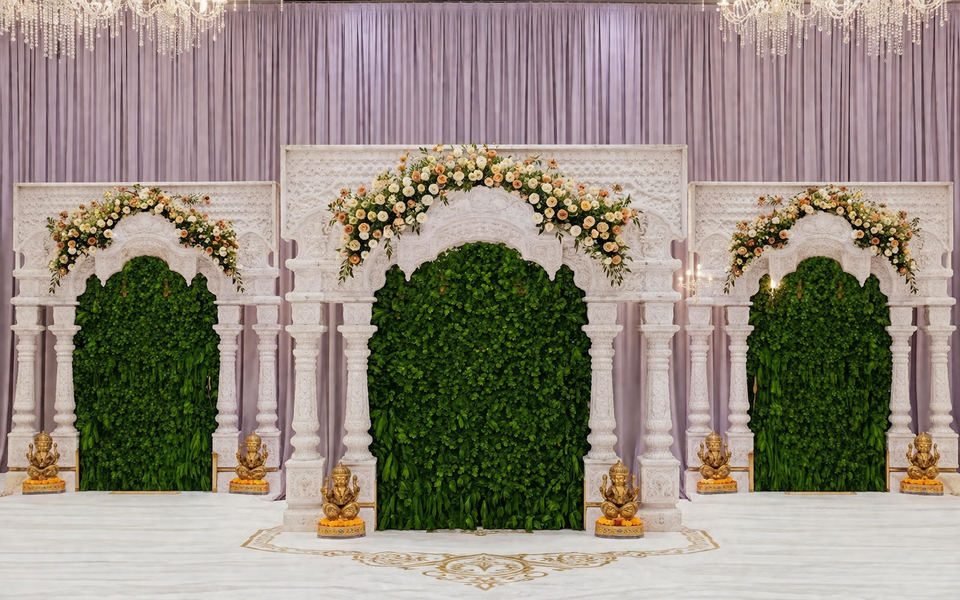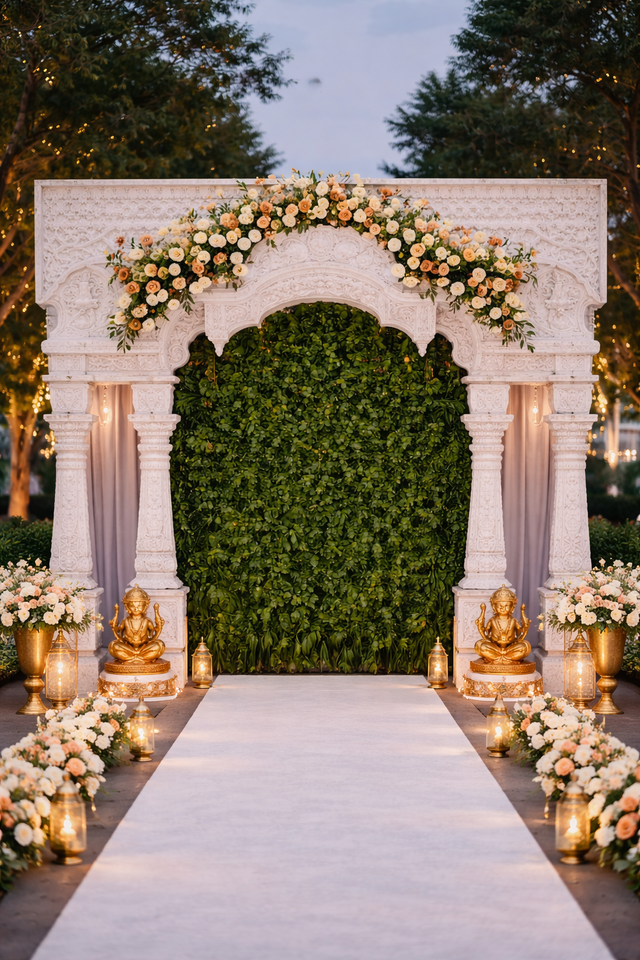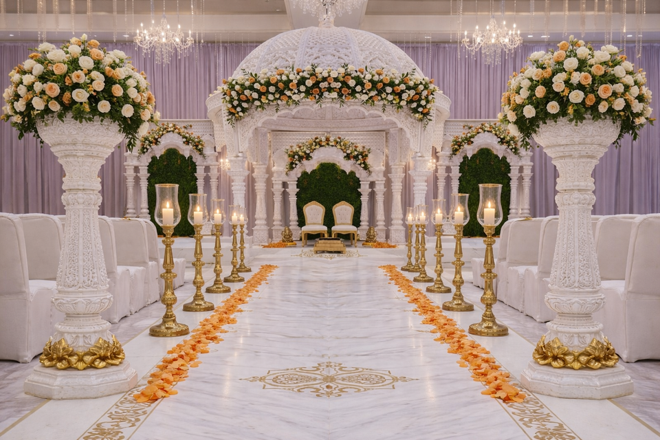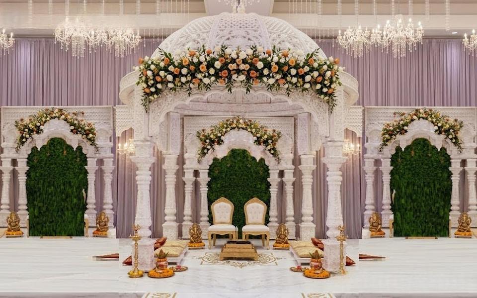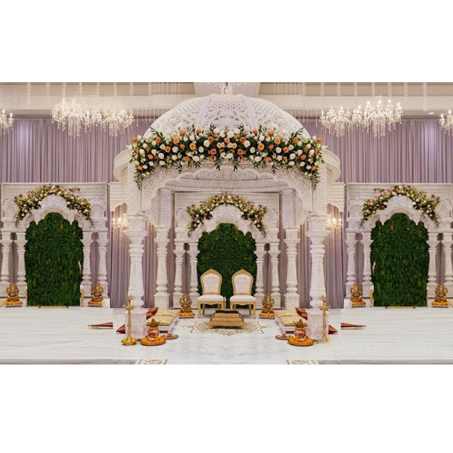 Mandap de Boda Estilo Raj Mahal con Domo, Decoración de Escenario de Boda Blanca Premium, Calidad de Exportación, Tendencia 2026, Mandap para EE. UU.