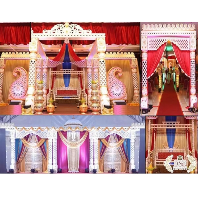 Mandap de Boda con Temática Real de Rajastán, Nuevo Mandap de Boda Gujarati Tallado en Fibra, Gran Mandap de Boda con Corona de Fibra para Eventos en Australia