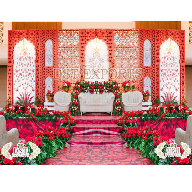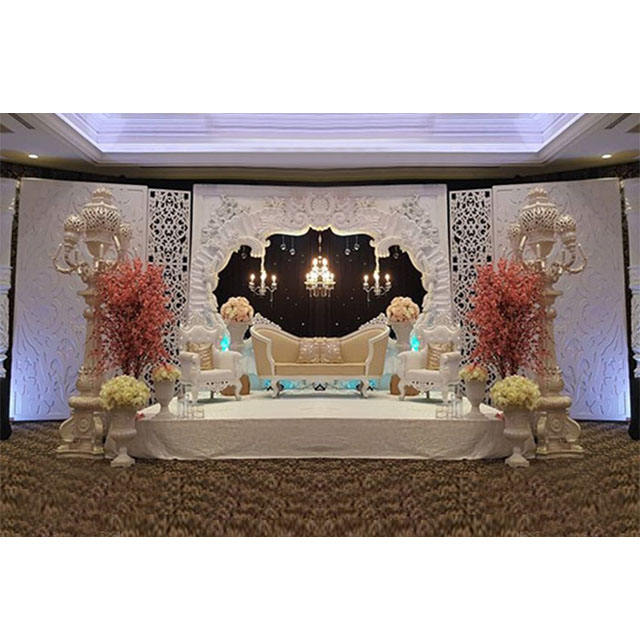 Marcos traseros de fibra de escenario de recepción real Marcos traseros de fibra de escenario de boda musulmana Marcos de escenario de boda asiáticos impresionantes