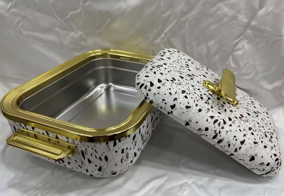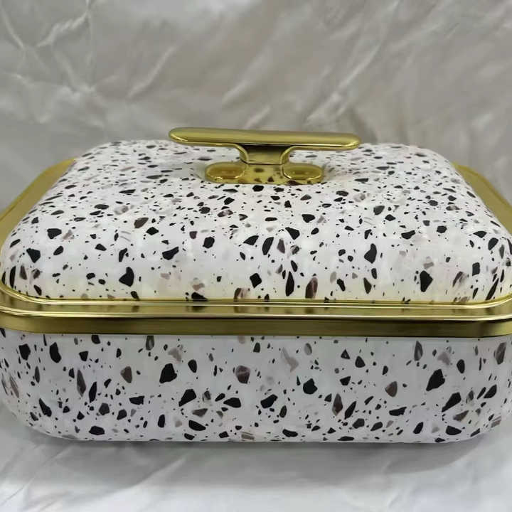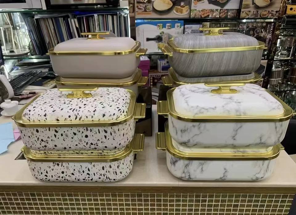 Olla Térmica Rectangular con Borde Dorado Estilo Real de 4L, Cazuela Aislada para Mantener la Comida Caliente, Ideal para Servir en Banquetes
