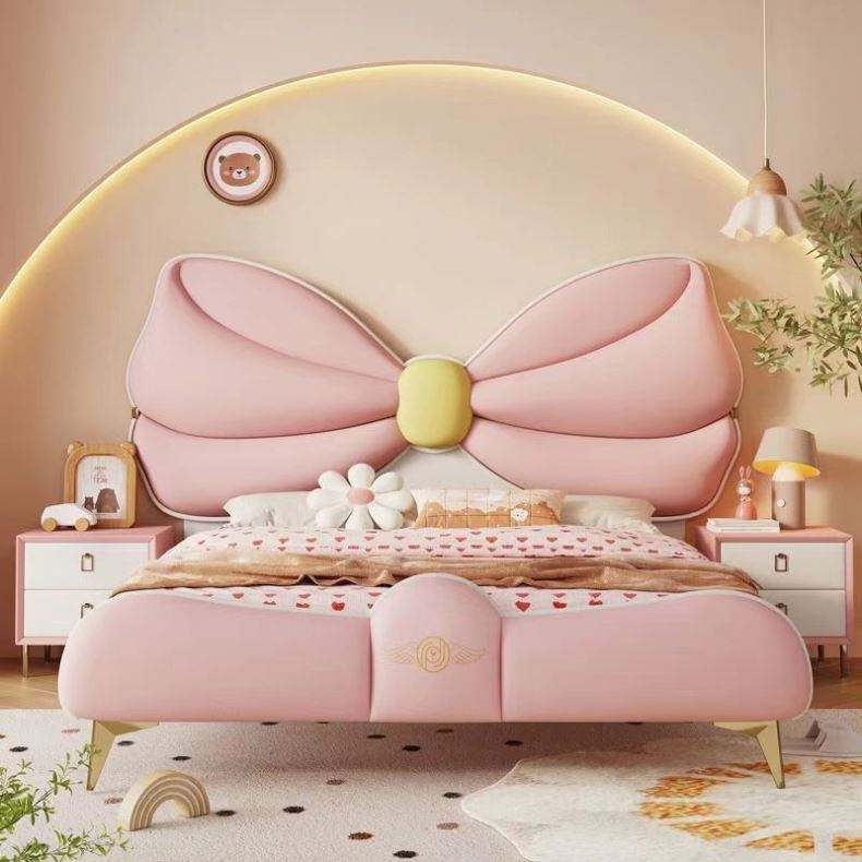 Cama temática real para niños con cabecero tapizado y diseño de ahorro de espacio para habitaciones pequeñas, regalo de muebles para niñas