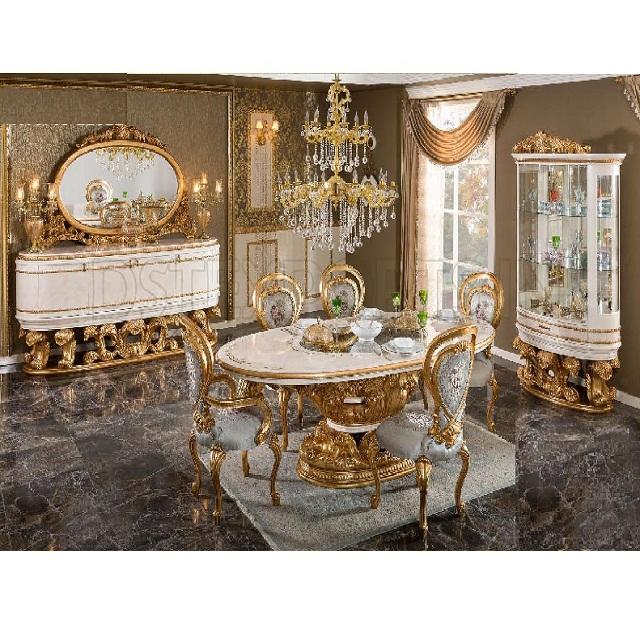 Royal White Gold Leaf Carving Dining Table SetProduct name