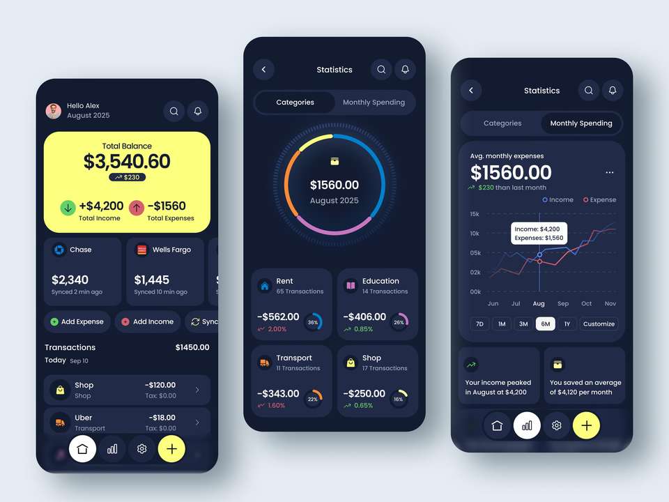 Desarrollo de Aplicaciones Móviles de Contabilidad RoyalCraft para Android e iOS con Informes de Cuentas, Seguimiento de Gastos, Facturación GST y Panel de Control de Facturas