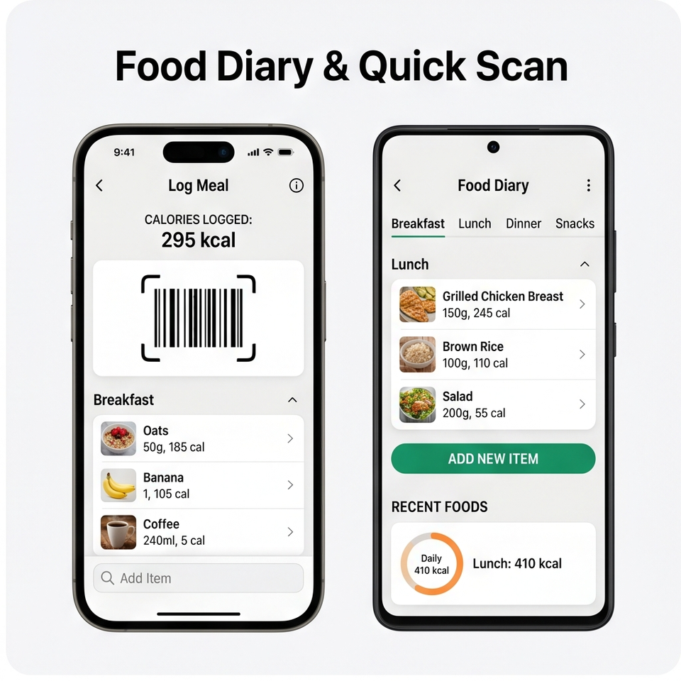 Aplicación RoyalCraft Calorie Counter: Conteo de calorías, planificador de dietas, guía de nutrición y pérdida de peso IOS/Android/Linux/Mac