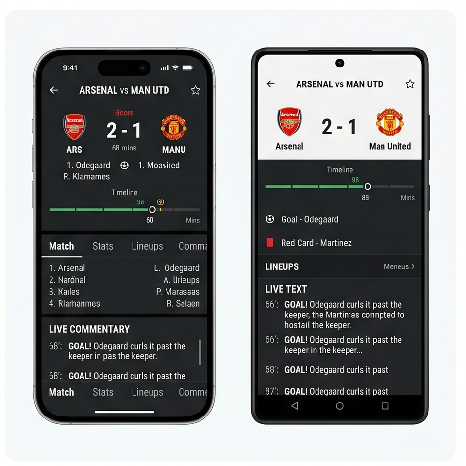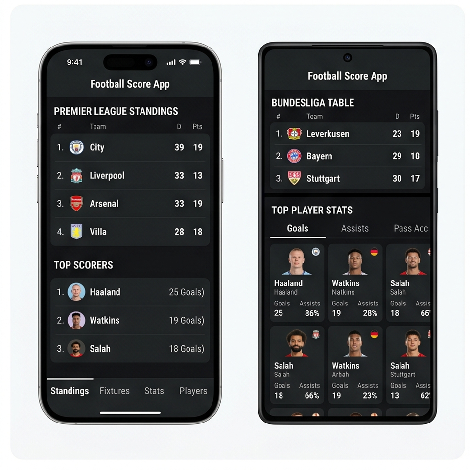 Aplicación de Puntuaciones de Fútbol RoyalCraft: Puntuaciones en Vivo, Actualizaciones de Partidos, Estadísticas, Horarios y Noticias de Fútbol IOS/Android/Linux/Mac