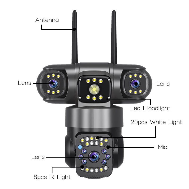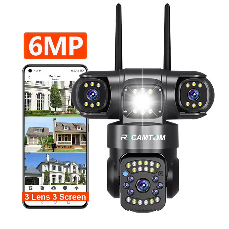 Rscamtom al aire libre 6MP tres lentes Cctv Cámara Wifi seguridad IP66 impermeable detección de movimiento alarmante V380 Pro 4G cámaras