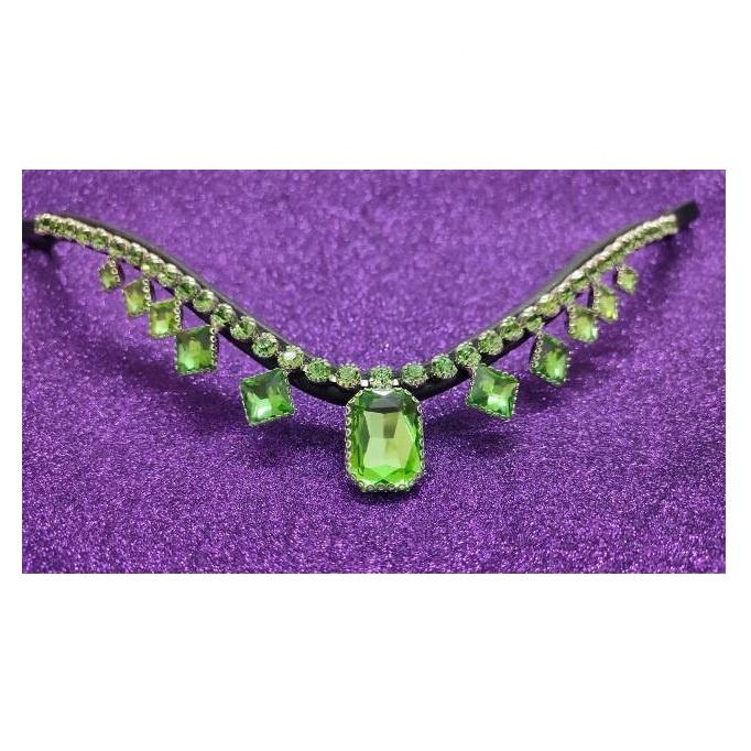 Rub International Designer Light Green Crystal Brow Band Cómoda forma cuadrada Negro Marrón Cuero Caballo ecuestre