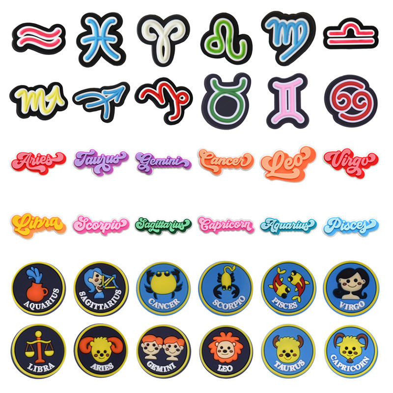 Dijes de Goma para Zapatos con los 12 Signos del Zodiaco: Aries, Tauro, Géminis, Cáncer, Leo, Virgo, Libra, Escorpio, Sagitario, Capricornio, Acuario, Piscis