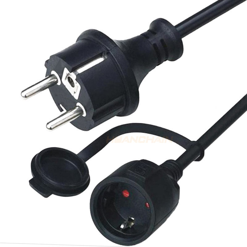 Cable de Extensión de Goma de 5m, Extensiones de Cable Externo con Enchufe de Protección, Extensión Schuko de 16A/250V, Negro