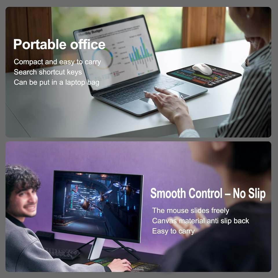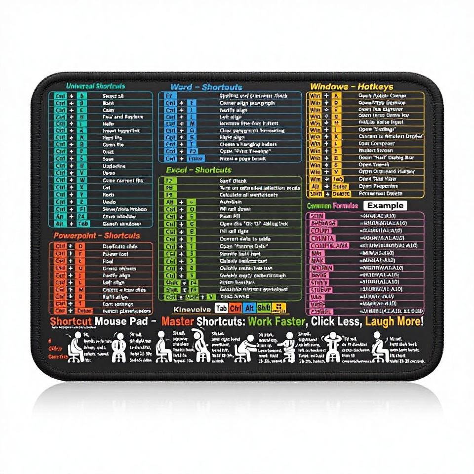 Alfombrilla de Ratón de Goma para Excel/Word/PowerPoint/Windows, Atajos de Teclado, Uso en Oficina y Juegos, Impermeable, Antideslizante, Grande