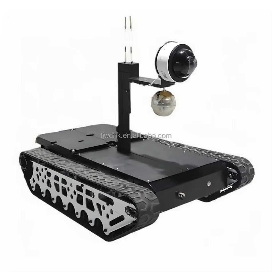 Plataforma Robótica con Chasis de Orugas de Goma, con Cámara y Antenas para Uso en Exteriores