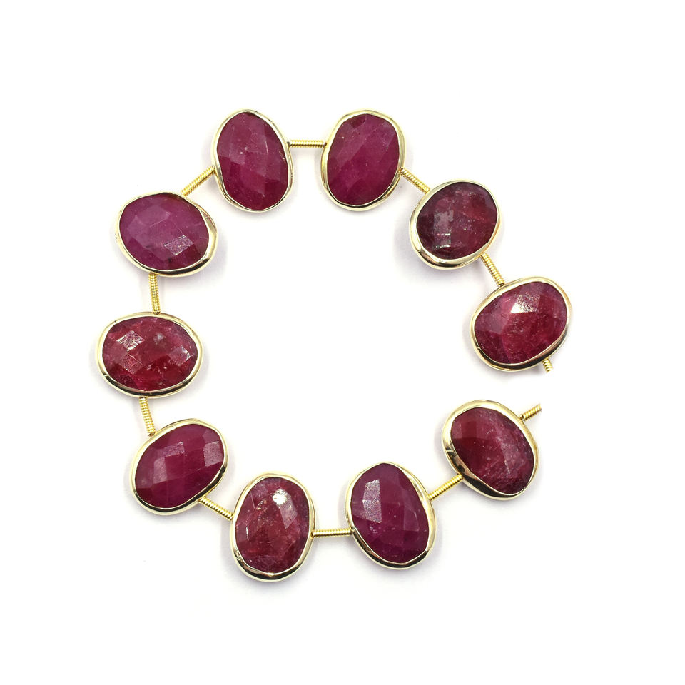Product Name:Ruby Silver Bezel Gold Plated Center Drilled 10 Beads Strand