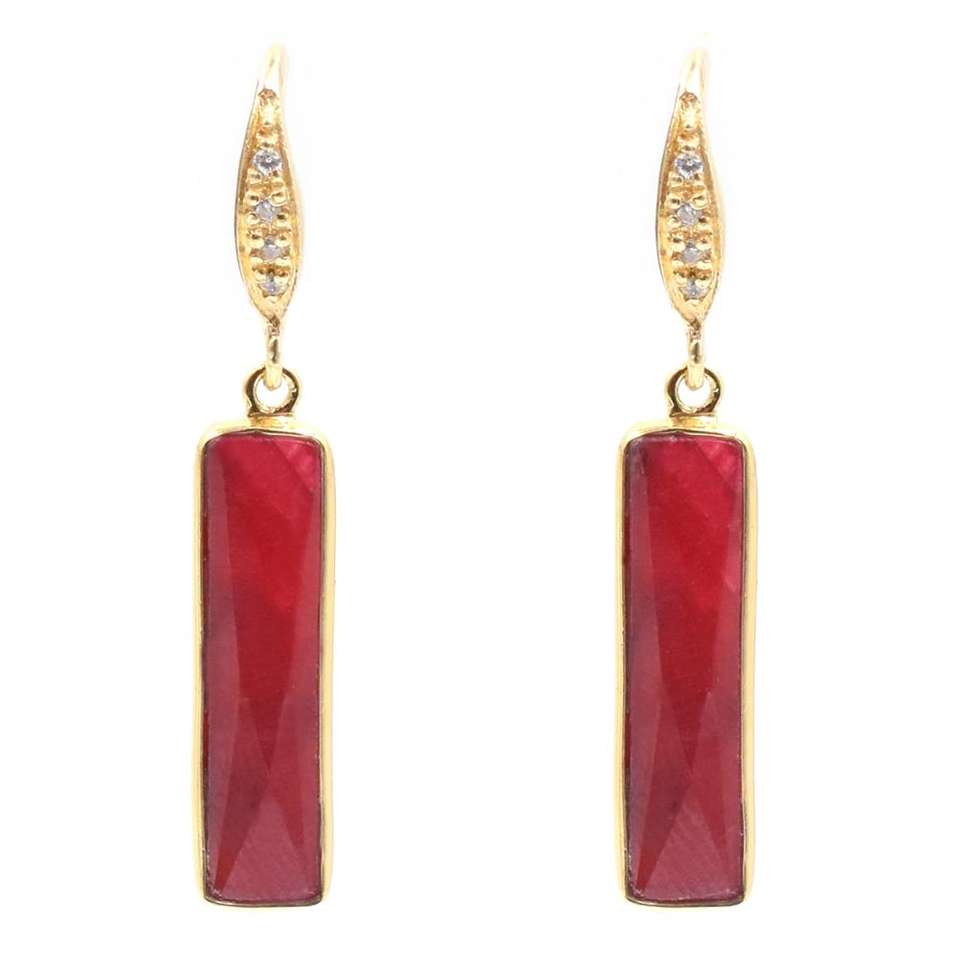 Ruby Rectangle Shape Gold Plated With Zircon Earring
