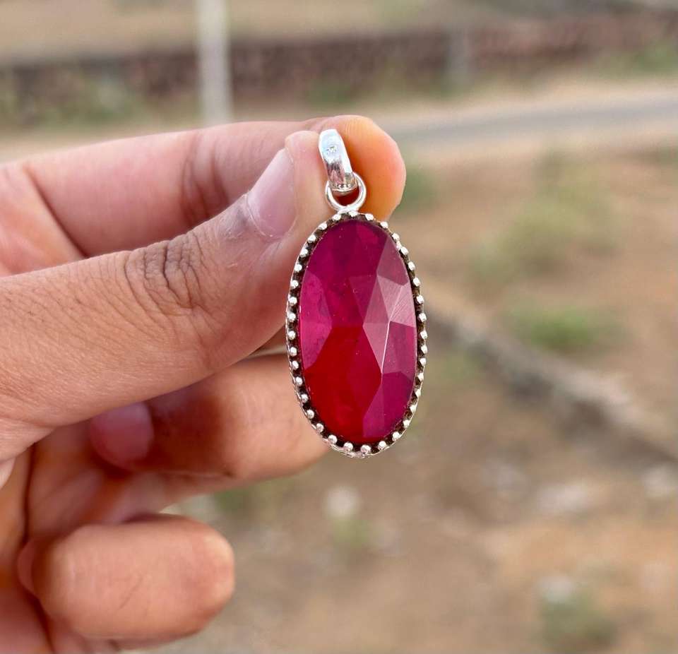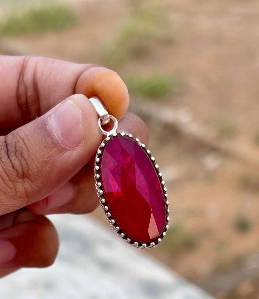 Material:925 astilla esterlina y piedra de cristal de Rubí