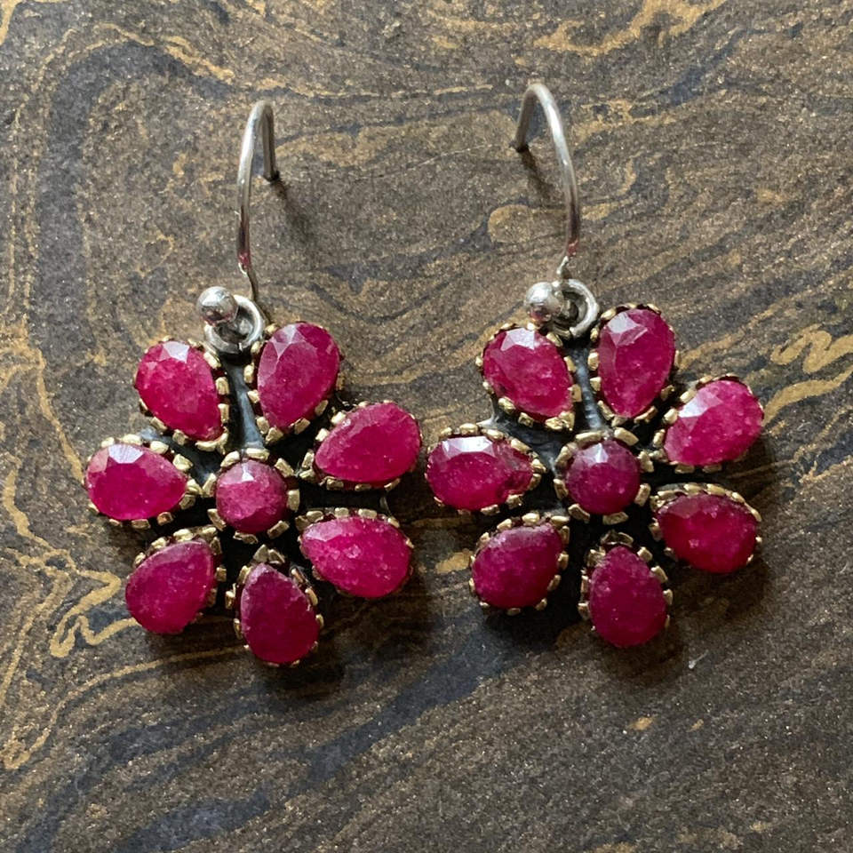 Pendientes de Oro con Rubíes (5.7 Gramos) en Forma de Flor con Diamantes Engastados en Bisel, Oro 14K/18K, Disponibles en Oro Amarillo/Blanco/Rosa para Boda