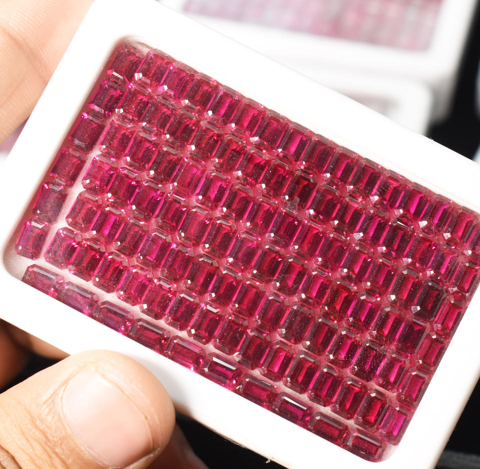 Piedra preciosa de rubí creada en laboratorio, corte esmeralda calibrado con Octágono facetado suelto para joyería para crear piezas impresionantes