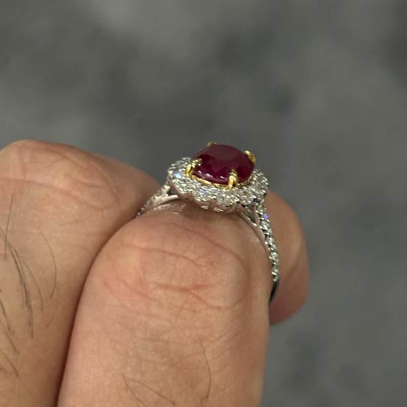 Anillo de Rubí con Incrustaciones de Cristal, Banda Minimalista Romántica en Oro, Plata de Ley 925 con Engaste de Puntas, Anillo Vintage de Rubí para Mujer, para Bodas y Fiestas