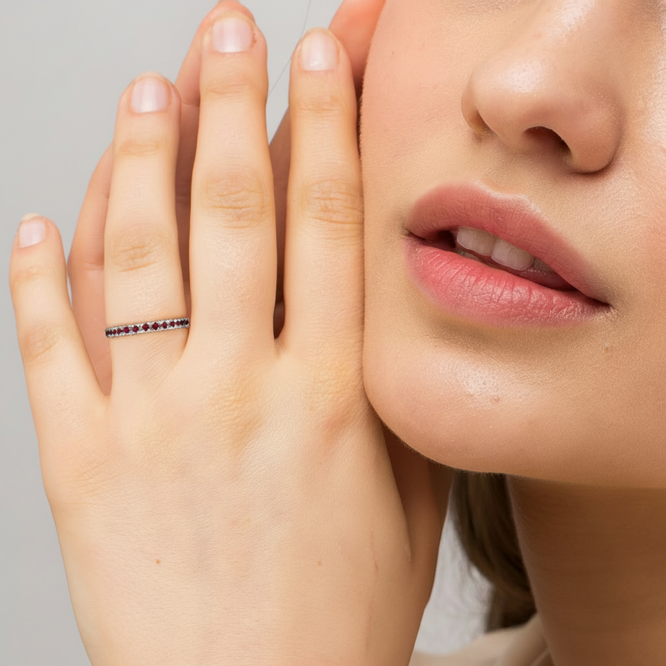 Anillo Apilable Ruby Guard, Oro Blanco de 14K, 0.37ct, Estilo Moderno con Incrustaciones, 2mm de Ancho, Chapado en Oro Rosa y Oro