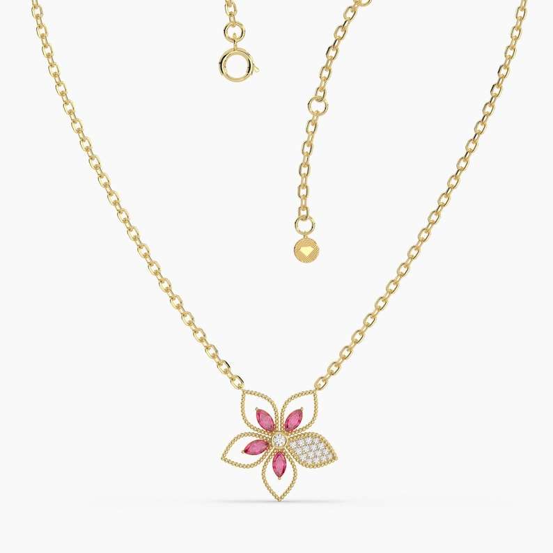 Palabra clave:Collar de flores naturales de rubí Marquise Colgante de plata de Rubí