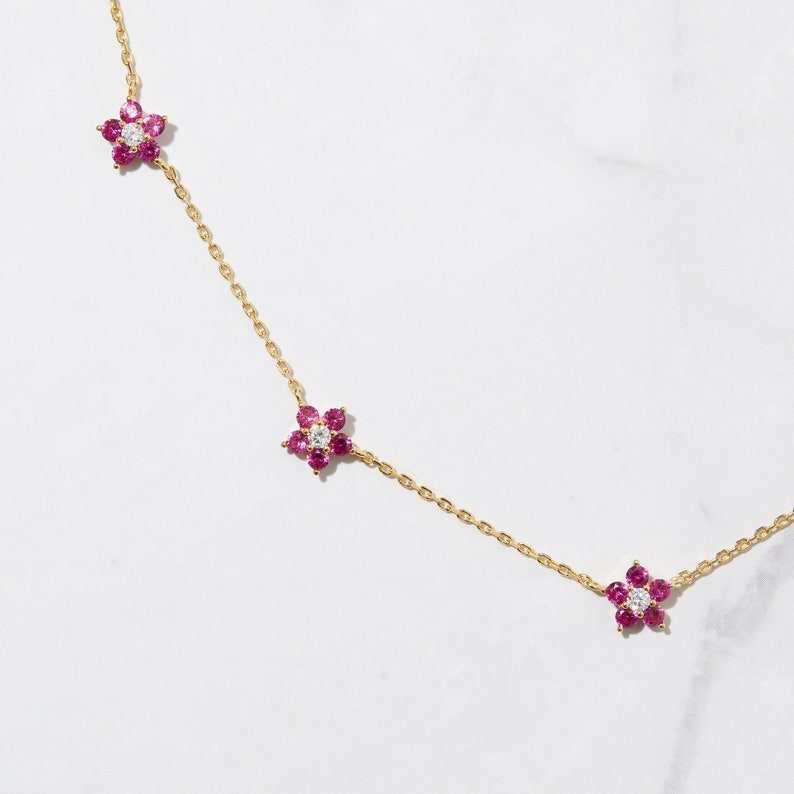 Palabra clave:Daisy Necklace Collar de flores con piedras de rubí espumoso