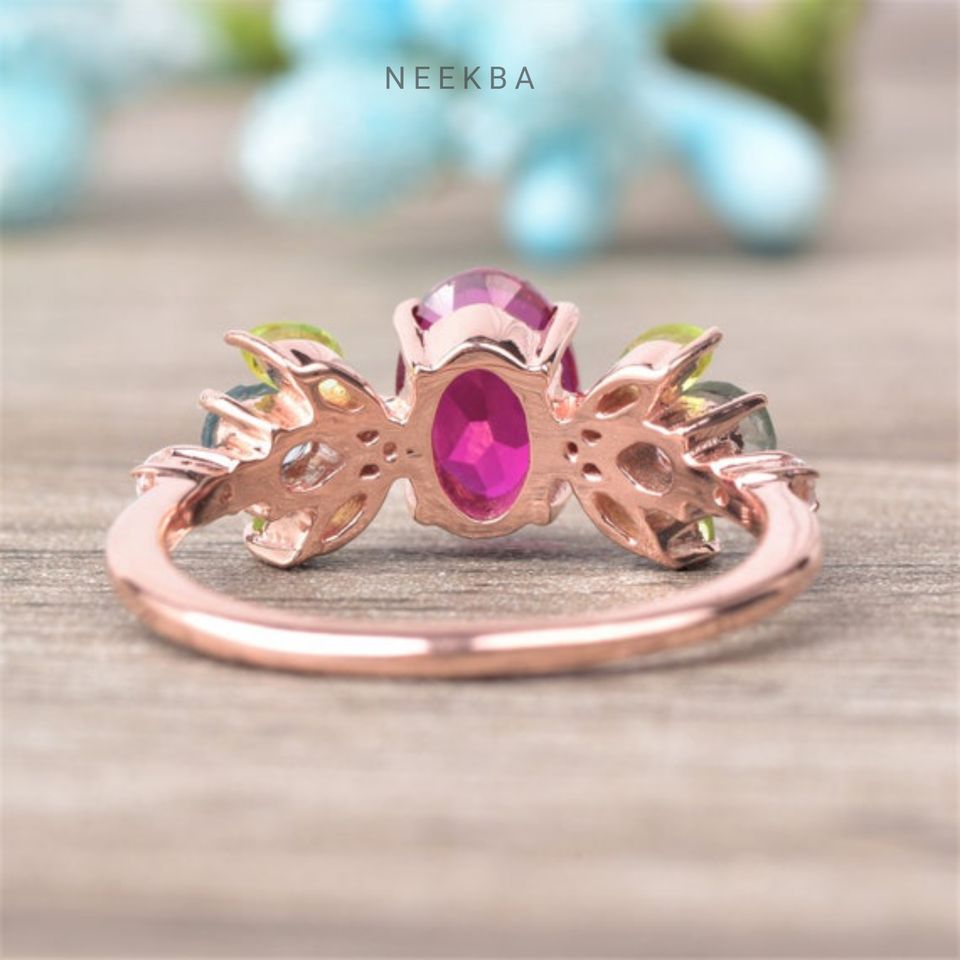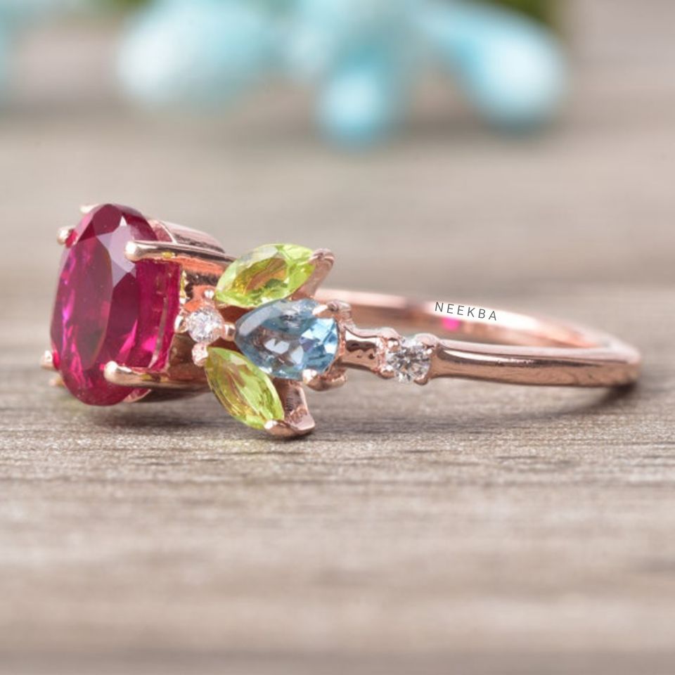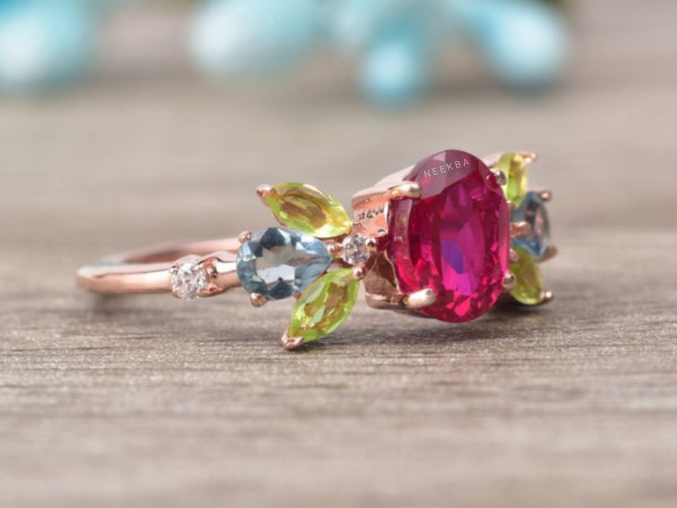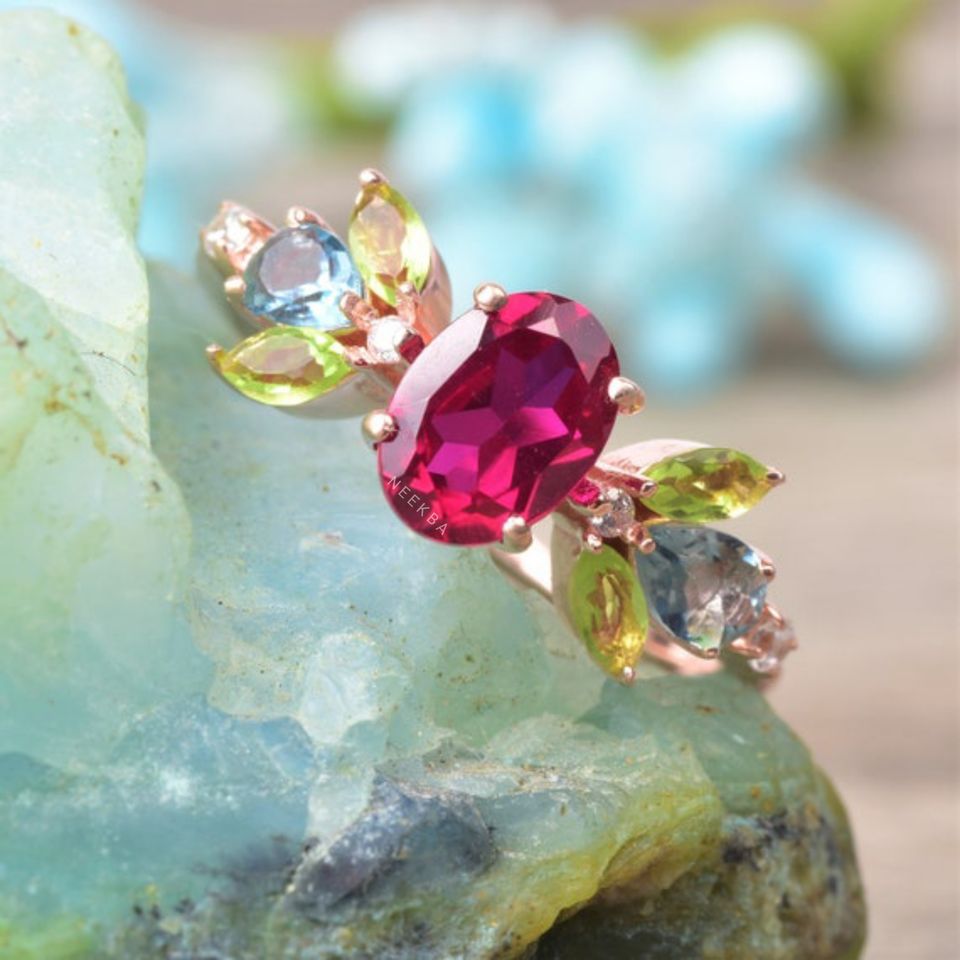 Piedras laterales:Peridoto, Aguamarina, Moissanite