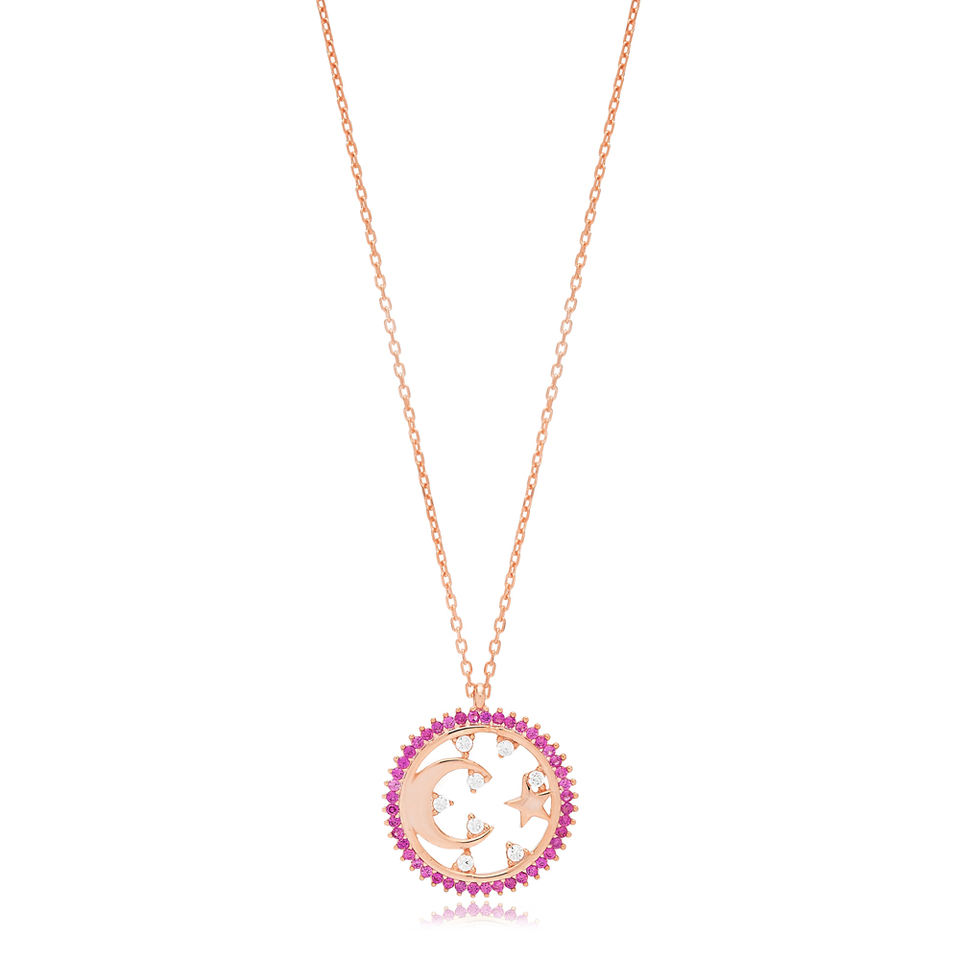 Colgante de Plata de Ley 925 con forma de luna y piedra de Rubí, joyería turca hecha a mano