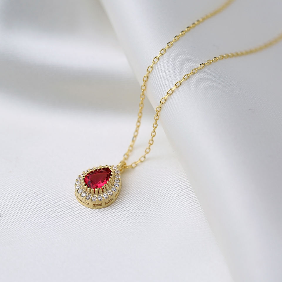 Colgante de plata de ley 925 con diseño de pera y piedra de Rubí, elegante, hecho a mano