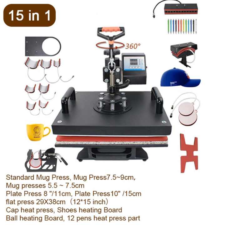 Máquina de Prensa de Calor Digital RubySub 15 en 1 con Almohadilla Calefactora para Gorras, Semi-Automática, para Impresión por Sublimación en Camisetas/Gorras