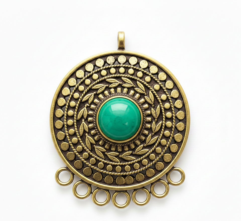 Collar de Lujo con Colgante de Mandala de Plata de Ley 925 de Alta Calidad Hecho a Medida por Rudra Gems, Cadena con Eslabones, Chapado en Oro Rosa para Hombre