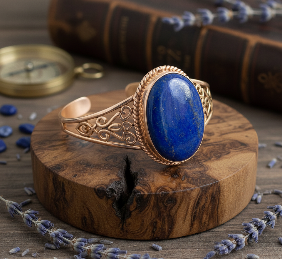 Rudra Gems hecho a mano Natural lapislázuli cabujón pulsera con cuentas tibetana plata Rosa chapado en oro bohemio hombres certificados