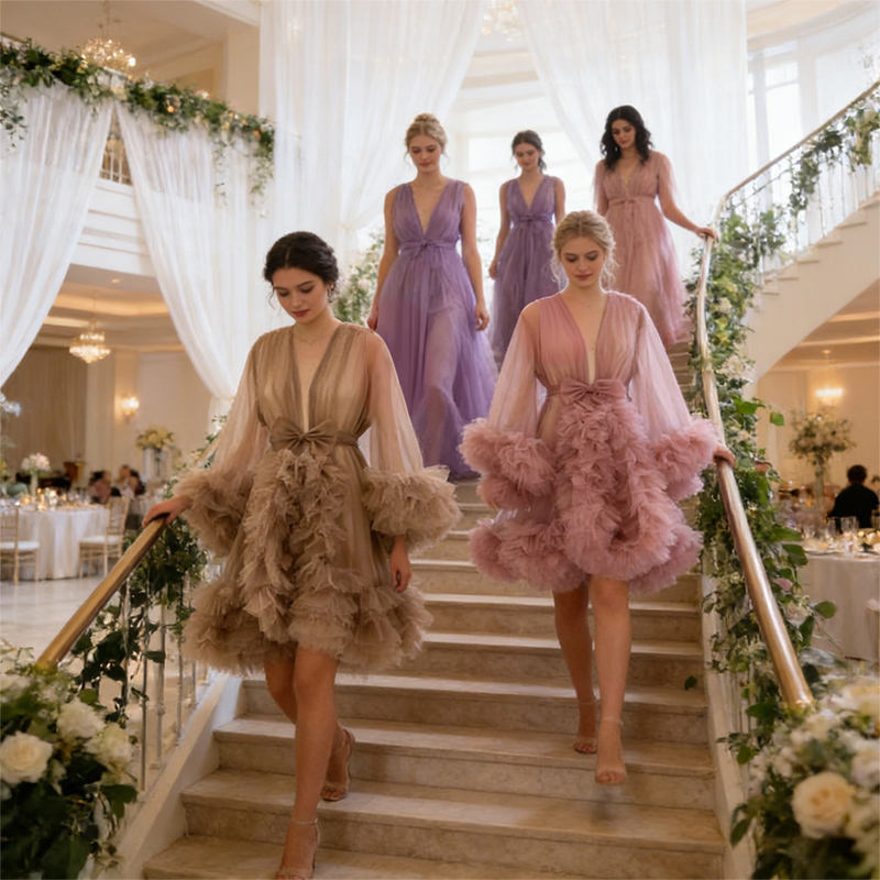 Nombre del producto:Bata de tul, bata de maternidad, vestido de mañana nupcial, bata de dama de honor