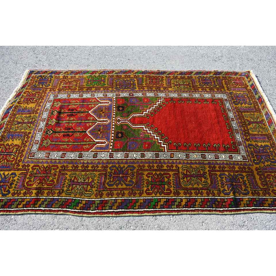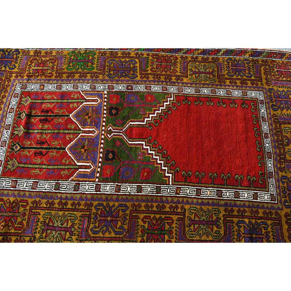 Alfombra Turca de 4.4x7 pies, Alfombra con Borde Rojo, de Lana