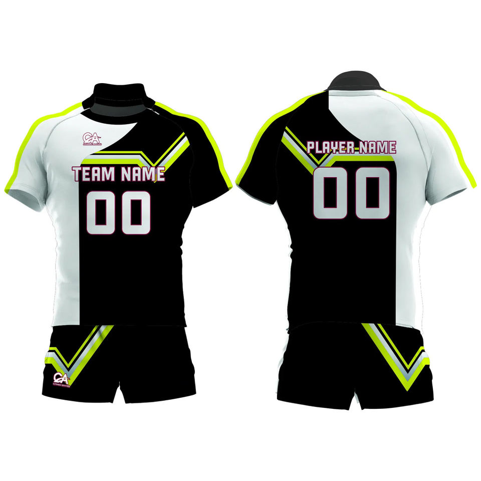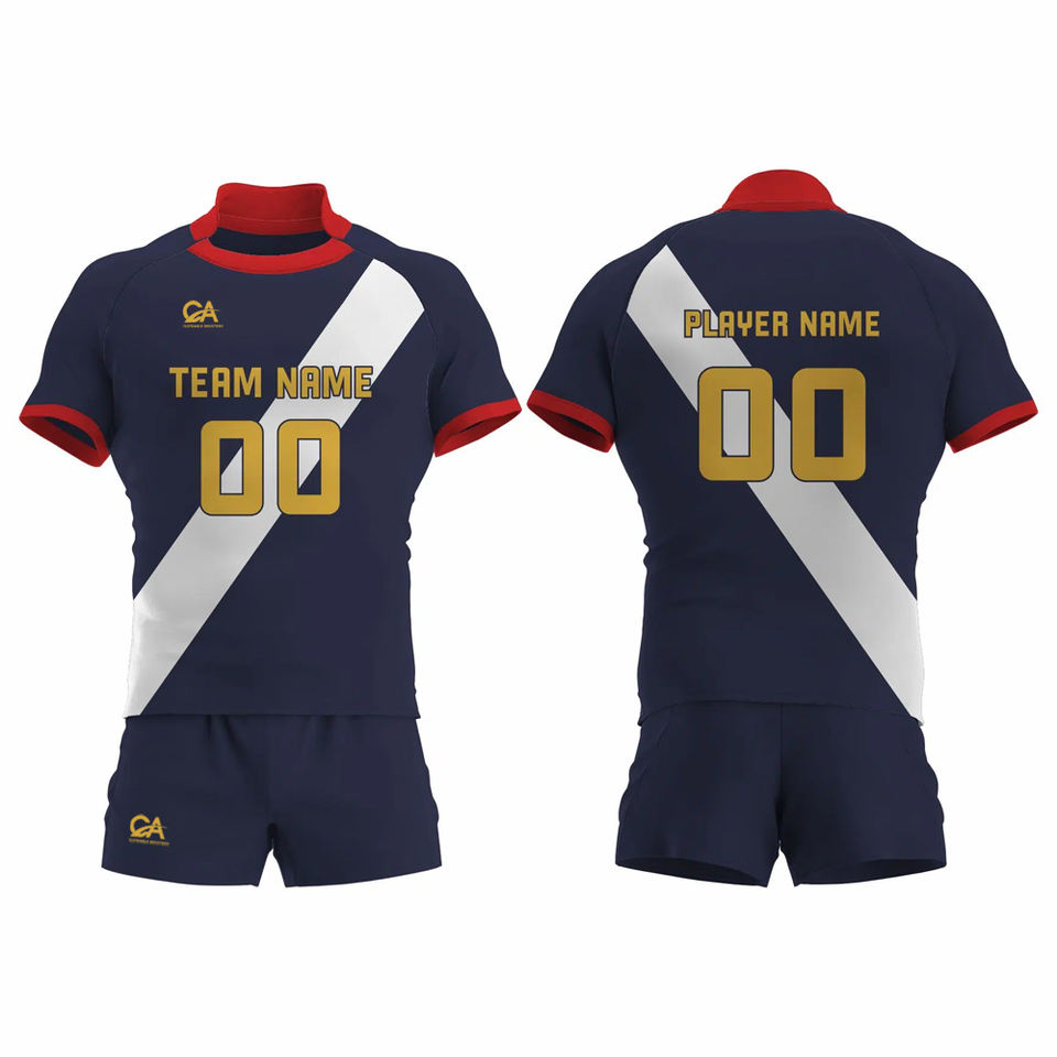 Conjuntos de uniformes de rugby Camiseta de rugby 100% Poliéster Logotipo de sublimación personalizado de secado rápido y diseño Uniforme de rugby de estilo bordado
