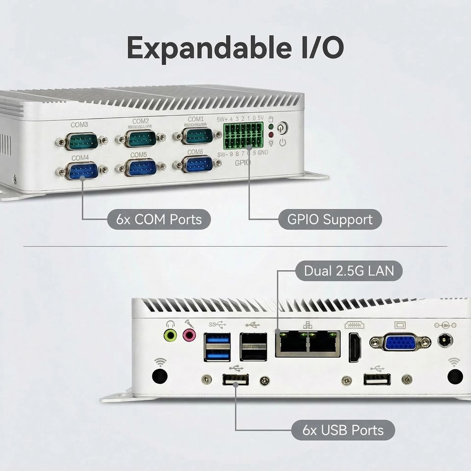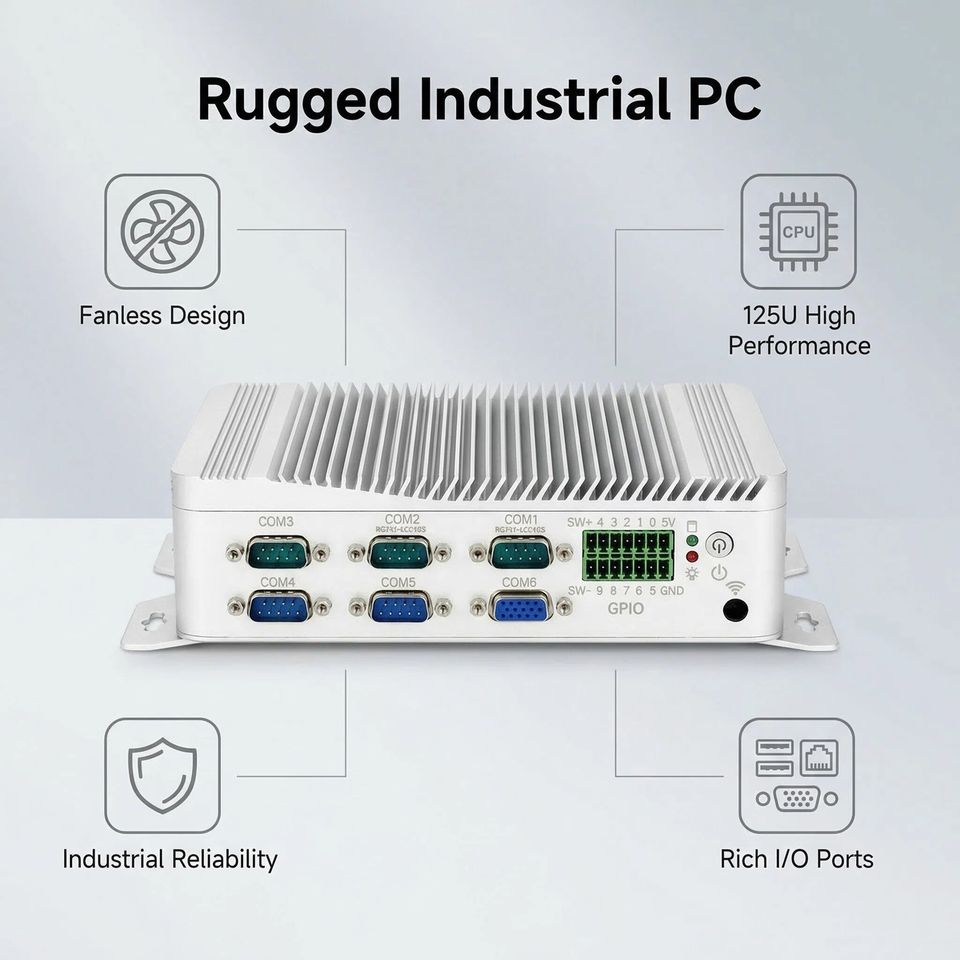 Mini PC Industrial Resistente, Core Ultra 5 125U Ultra 7 155U, 2x2.5G LAN, 6xRS232/RS485 COM, GPIO, Computadora de Escritorio Industrial EGE AI, 4G