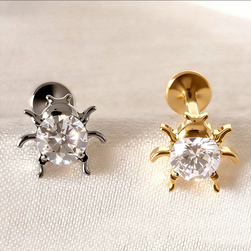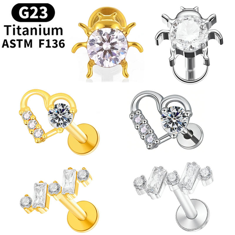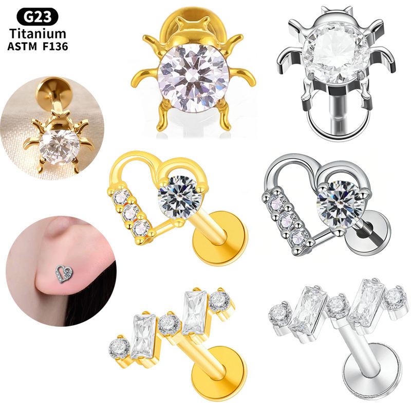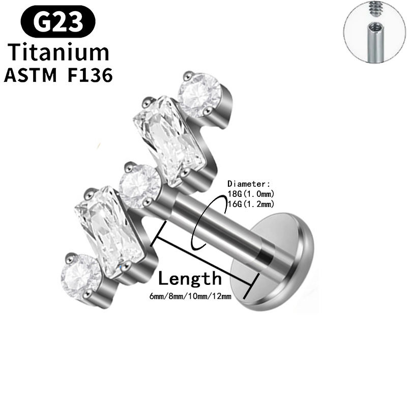 Pendiente de Titanio Rui Qian ADTM F136, Zirconia de Alta Calidad, Perfora el Hueso, Joyería Corporal para Mujer, Titanio G23