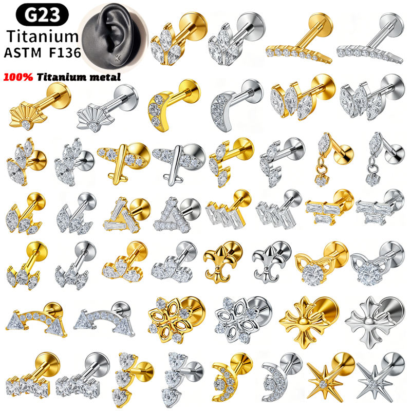 Pendientes de Titanio Puro ASTM F136 Rui Qian, Accesorios de Perforación con Rosca Interna, Titanio G23, Pendientes de Botón Modernos para Mujer