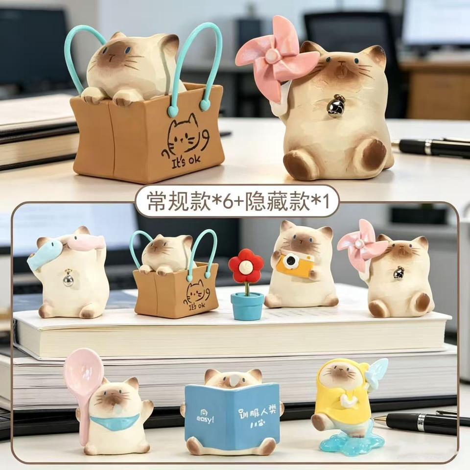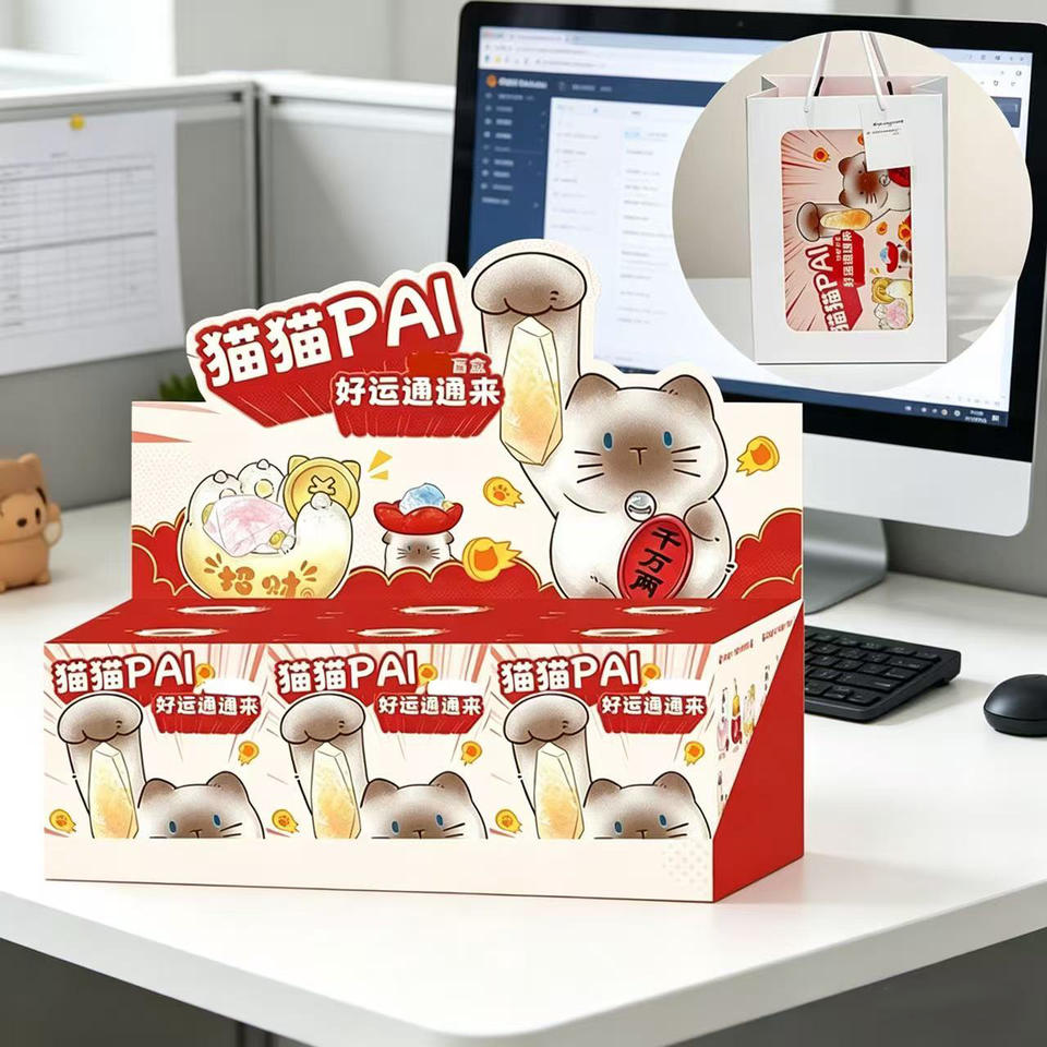 Caja Sorpresa con Figura Miniatura de Gato de Dibujos Animados Ruijie, Decoración de Escritorio, Regalo Creativo para Cumpleaños de Novia