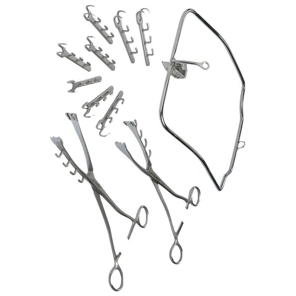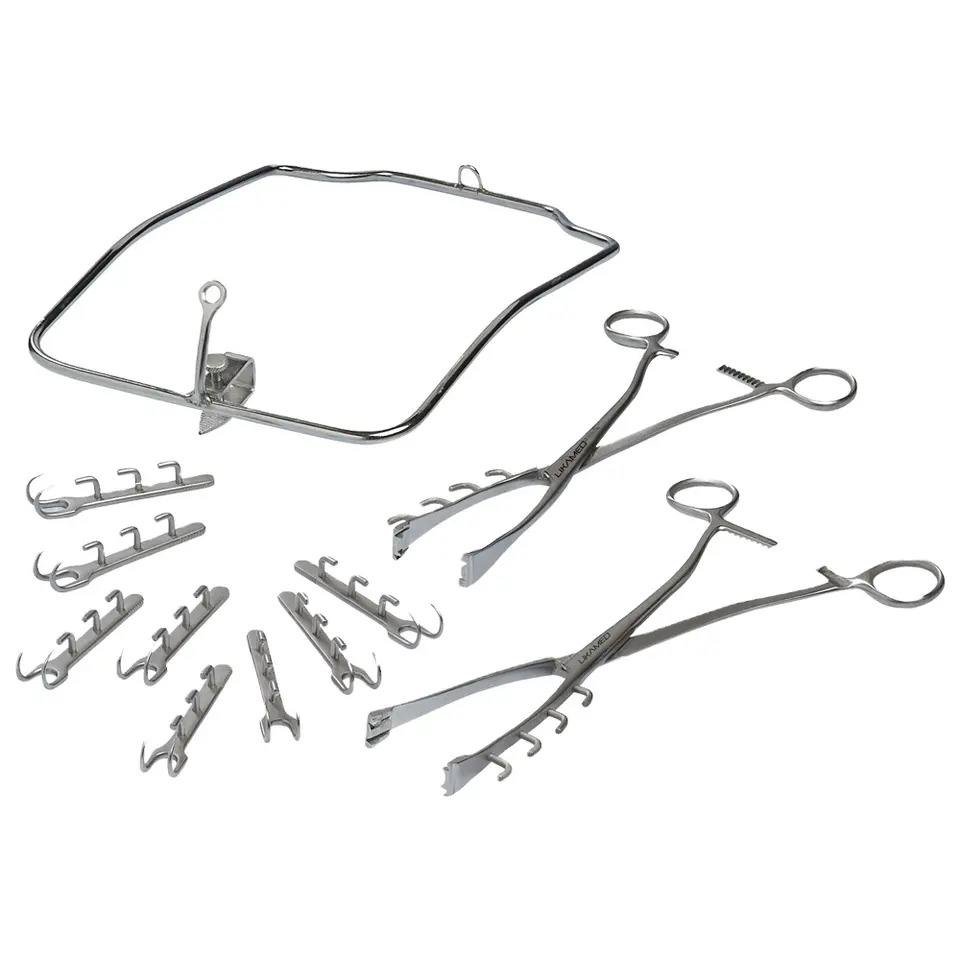Juego de instrumentos veterinarios de rumenotomía, hecho en acero inoxidable de Alemania, utilizado en tratamiento de animales, 11 Uds.