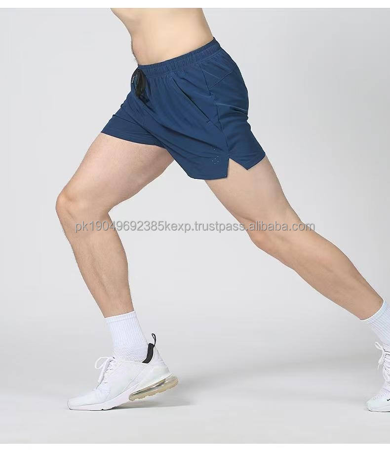 Pantalones cortos para correr para hombre, pantalones cortos deportivos elásticos de LICRA de poliéster transpirable, pantalones cortos de entrenamiento de secado rápido de Color sólido de estilo básico