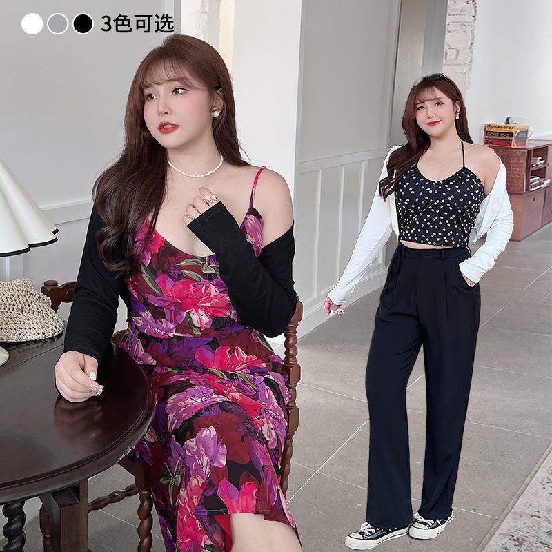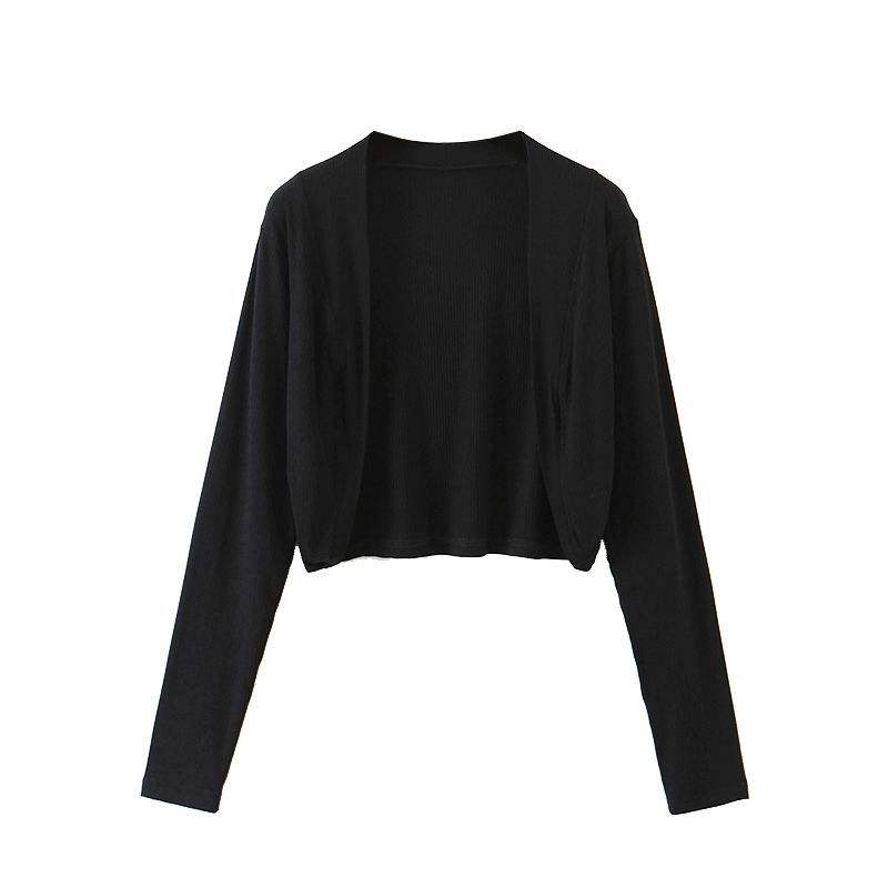Cárdigan corto modal Runqi N8342 de talla grande para mujer, grosor medio, con etiqueta y marcas.