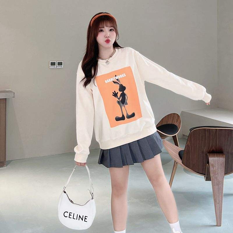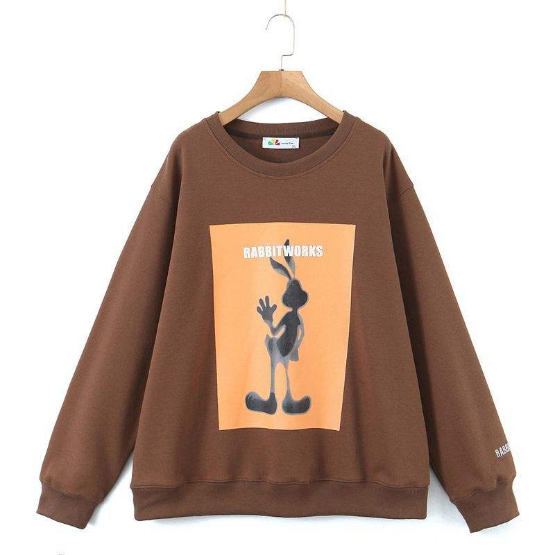 Sudadera de Cuello Redondo con Estampado de Conejo para Mujer, Talla Grande, Marca Runqi, Tejido de Algodón, Nueva Colección de Otoño N8626