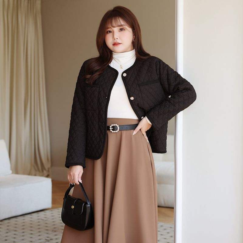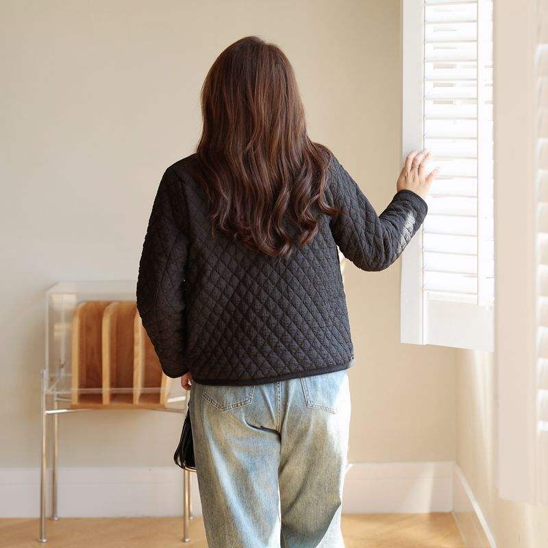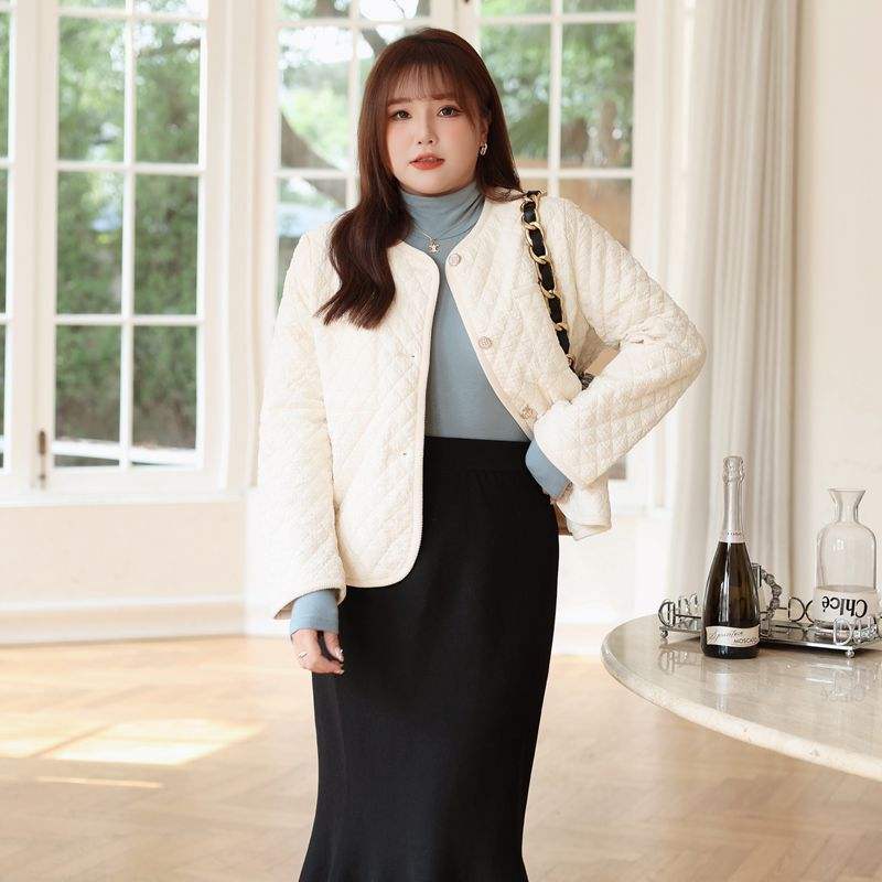 Chaqueta Acolchada de Algodón Runqi, Talla Grande, Otoño Invierno, Estilo Francés Informal, Chaqueta de Mujer de Grosor Medio con Bolsillo