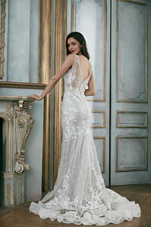 Ruolai-PEV-L3048 de Organza con diamantes de imitación brillantes, vestidos de novia con parte trasera baja, color gris y plateado