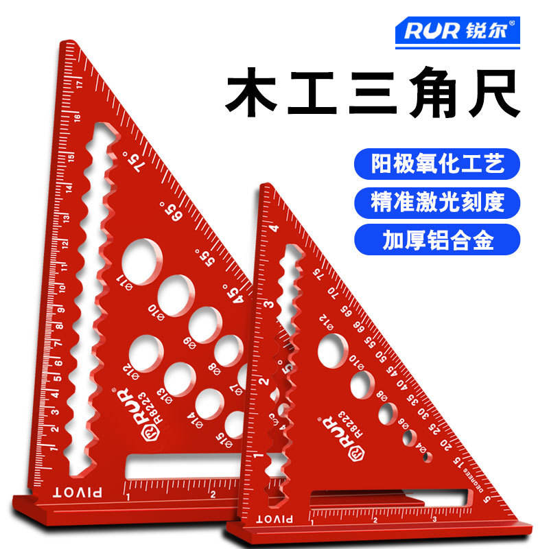 Rur Aluminum Alloy Angle Ruler 90 Degree Triangle Woodworking Right Angle Ruler PR824 High Precision Measuring Tool