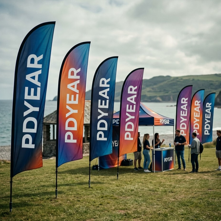 Bandera de Playa Publicitaria Personalizada con Envío Rápido, Asta de Fibra de Vidrio, para Campañas de Marketing Urgentes