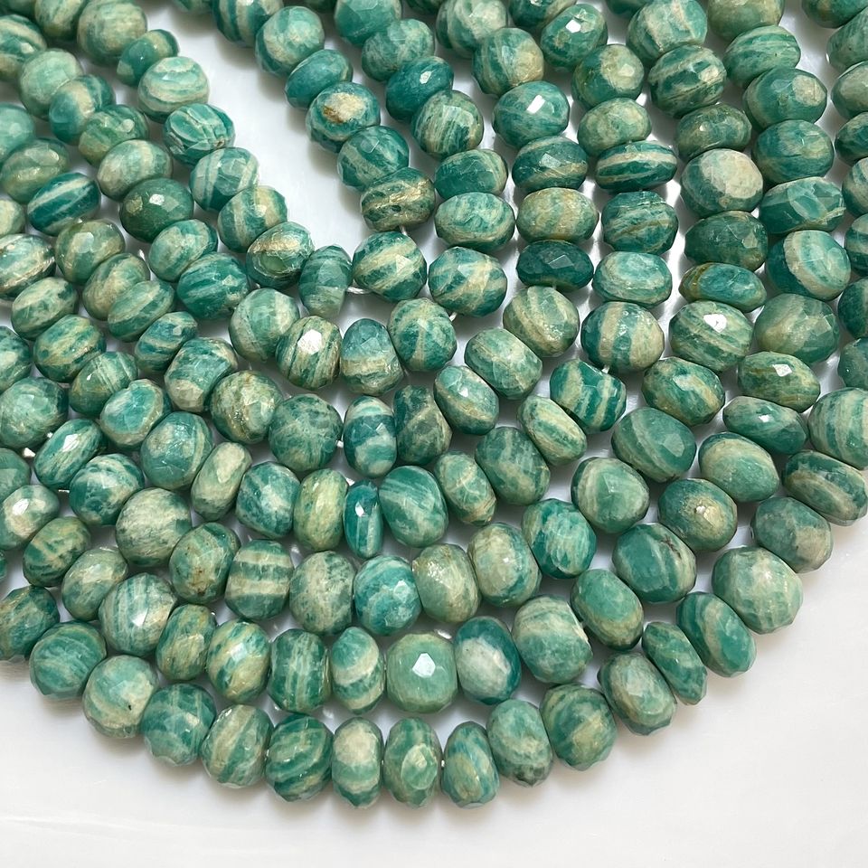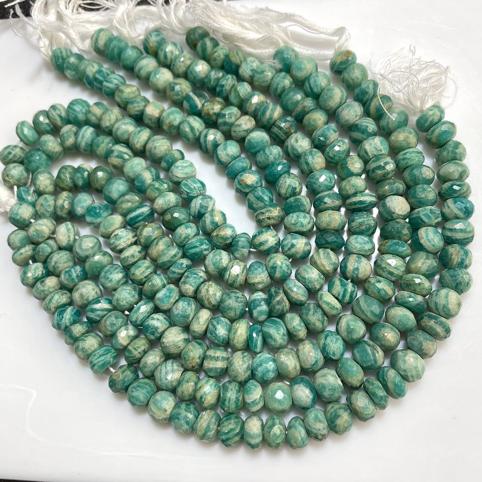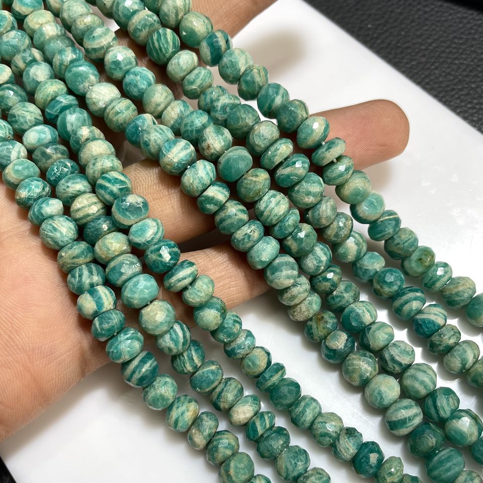 Cuentas de forma de Rondelle facetadas de amazonita rusa, cuentas de Rondelle de piedras preciosas naturales de buena calidad para joyería