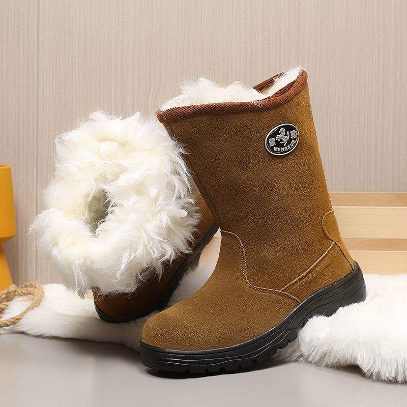 Botas de Nieve Rusas Importadas de Lana con Tacón Medio, Botas de Invierno Cálidas y Gruesas, Suela Inyectada Antideslizante y Resistente al Desgaste para Uso en Interiores